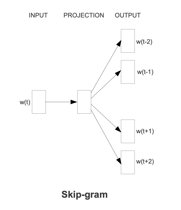 FastText는 skip-gram을 base로 한 모델이기 때문에 비교를 위하여 간단하게 skip-gram model에 대하여 설명드리도록 하겠습니다.