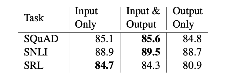 단순히 input의 위치에서만 ELMo를 추가하는 것이 아닌, 입,출력 동시에 추가했을 경우, 출력에만 추가했을 경우를 비교하였습니다.