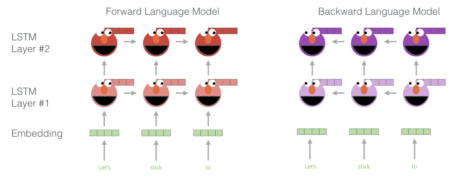 ELMo는 LSTM을 사용하여 biLM을 구성합니다.