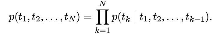 우선 forward LM은 Token Sequence의 확률을 계산할 때, token \(t_k\)의 확률을 이전 token들 \((t_1,...,t_{k-1})\)을 활용하여 모델링합니다.