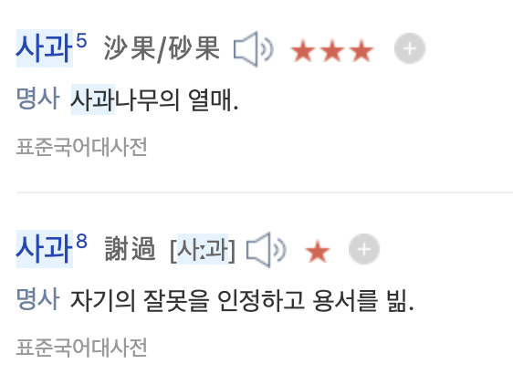 예를 들어 우리말 '사과' 는 동음 이의어로 아래와 같이 완전히 다른 의미를 동시에 표현할 수 있습니다.