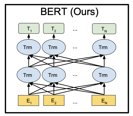 BERT의 기본적 구조는 앞서 말씀 드린 바와 같이 Multi layer bidirectional Transformer(Encoder)로서, deep bidirectional model 입니다. deep bidirectional model은 GPT와 같은 단방향 구조보다 강력하며, ELMo 등의 얕은 양방향 concatenate 구조보다 깊게 학습이 가능합니다.
