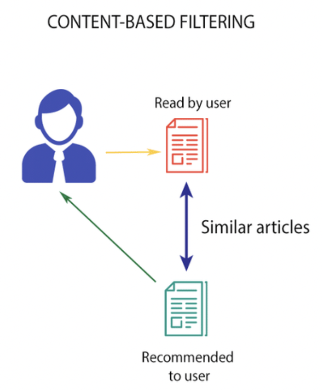 간단히 설명드리면 컨텐츠 기반 필터링은 "유저 A가 아이템 1을 좋아하는데, 아이템 1과 비슷한 아이템 2도 좋아하겠지??" 라는 추측과 동일한 과정이라고 할 수 있습니다.