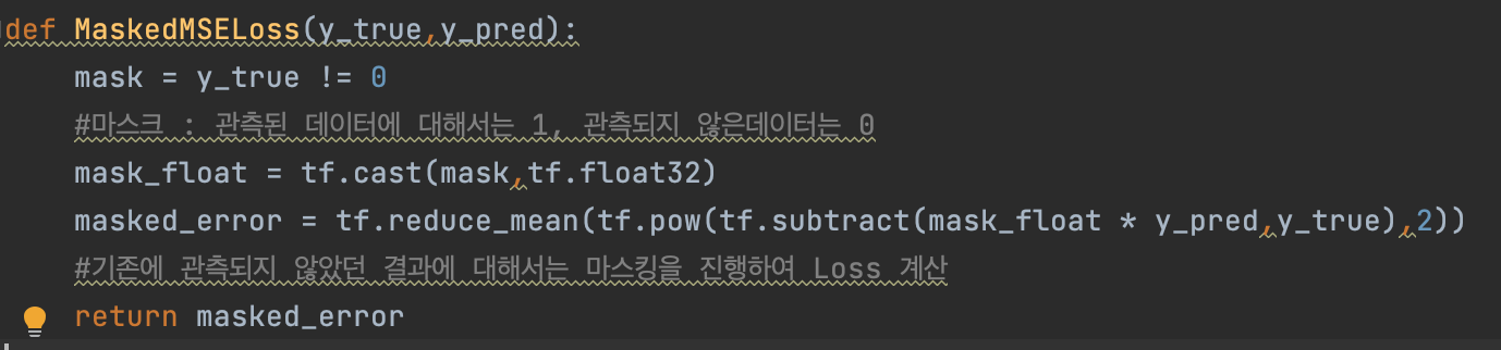 이 때 중요한점은, 관측되지 않은 데이터에 대해서는 역전파를 진행하지 않고, 관측된 데이터의 파라미터에 대해서만 역전파를 통해 업데이트가 된다는 것 입니다.