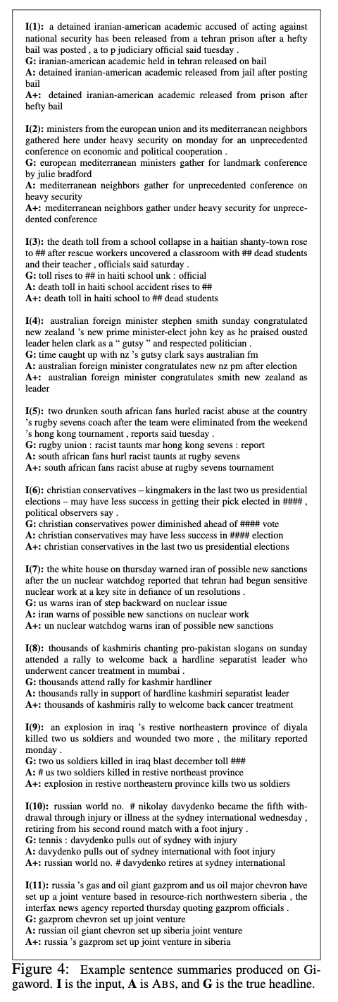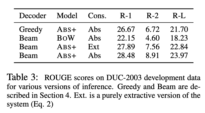 2015년에 발표된 본 눈문은 이러한 Abstractive summarization을 위한 scoring function \(\mathbf{s}\)의 모델링에 대해 다루고 있습니다.