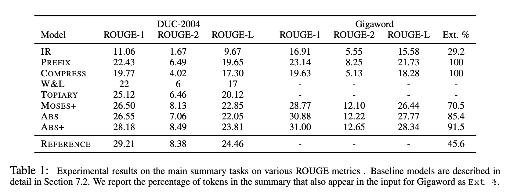 DUC-2004 데이터셋은 사람이 직접 작성한 reference summary를 포함하고 있으며,