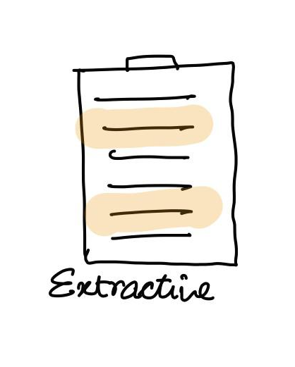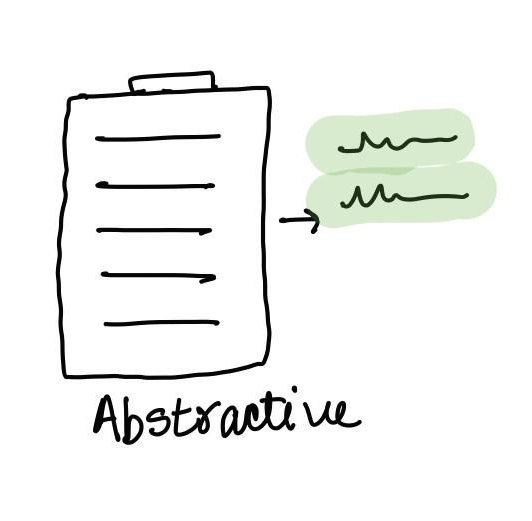 이처럼 우리의 요약 방법은 모든 문장을 그대로 인용하여 사용하지 않습니다. 따라서 우리가 보편적으로 문서를 요약하는 방법이 Abstractive summarization에 가깝다고 할 수 있습니다.