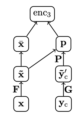$$enc_3(\mathbf{x},\mathbf{y_c}) = \mathbf{p}^T\bar{\mathbf{x}},$$