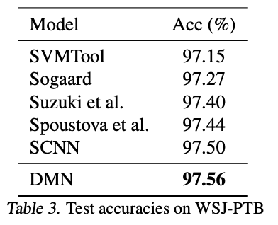 DMN이 기존의 SOTA 모델보다도 좋은 성능을 보였음을 확인할 수 있습니다.