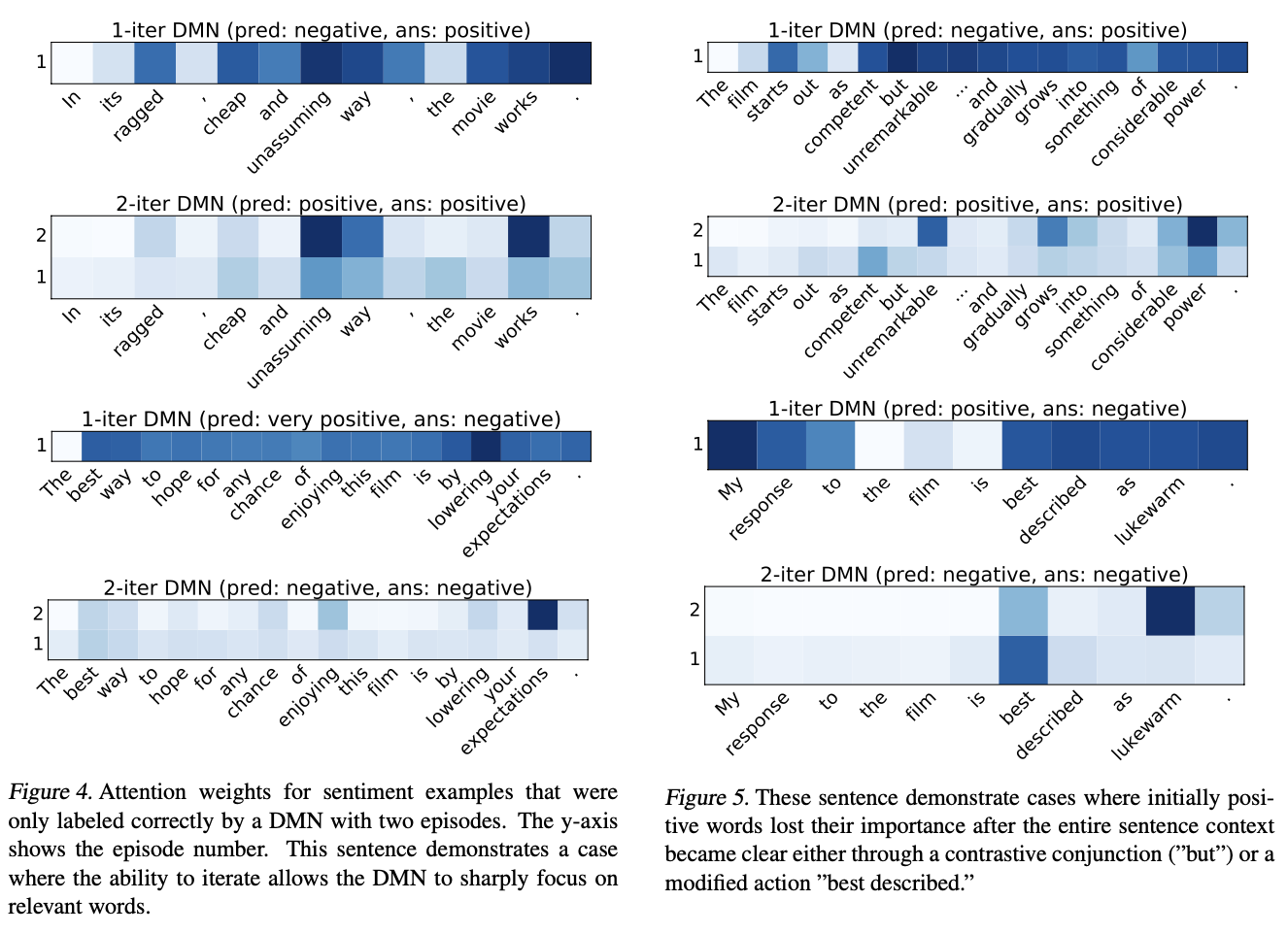 Figure 4의 예시는 Iteration을 통해 sentiment를 나타내는 단어에 대한 Attention이 변화하며, 따라서 예측 또한 정확해질 수 있다는 사실을 보여주고 있습니다.